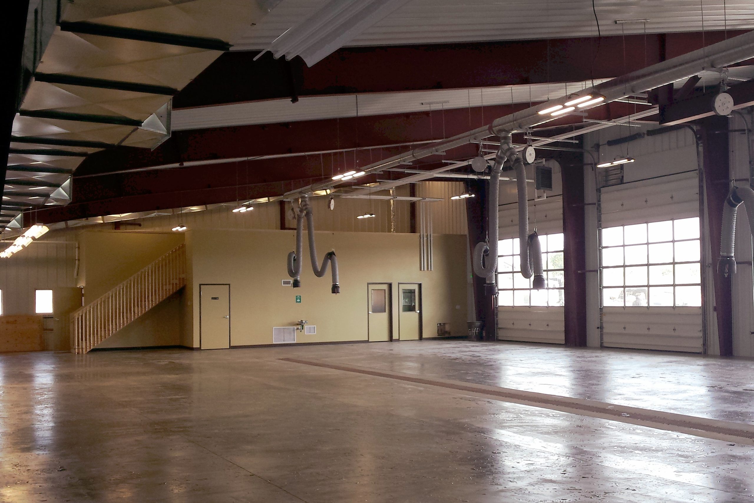 The shop concrete floor has a in-floor trench drain with railroad steel rails embedded into the concrete floor for the client’s heavy equipment to deter the slab from being damaged. The shop is equipped with monorail system and 2 ton hoist. The full finished office area is complete with breakroom, restrooms, and offices, with mezzanine storage above.