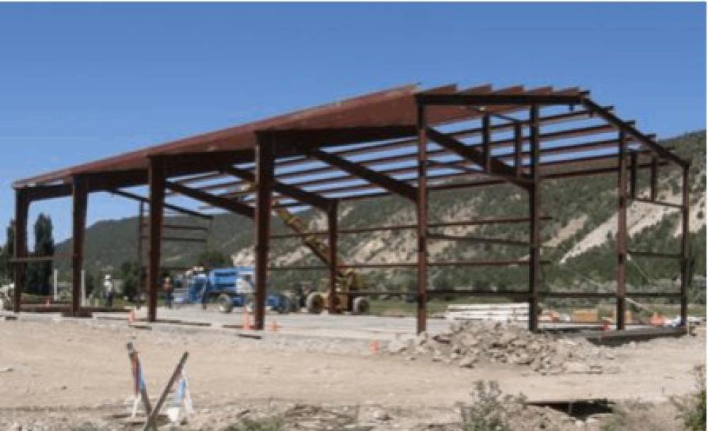 Competitive bid, new construction of 4,962 sf building, includes approximately 912 sf full finish office and 4,045 sf shop. The office area included a full bathroom with shower, breakroom with casework and sink and office/lab. The shop included five overhead doors, trench drains, radiant heat and motorized dampers. The building was constructed with a footer/stemwall foundation and concrete floor slab. The pre-engineered steel building was completed with R-50 metal building insulation in the roof and R-21 in the exterior walls over a full concrete subfloor with pilaster columns and grade beams. The exterior was finished with a brick wainscot and standing seam roofing with snow guards.